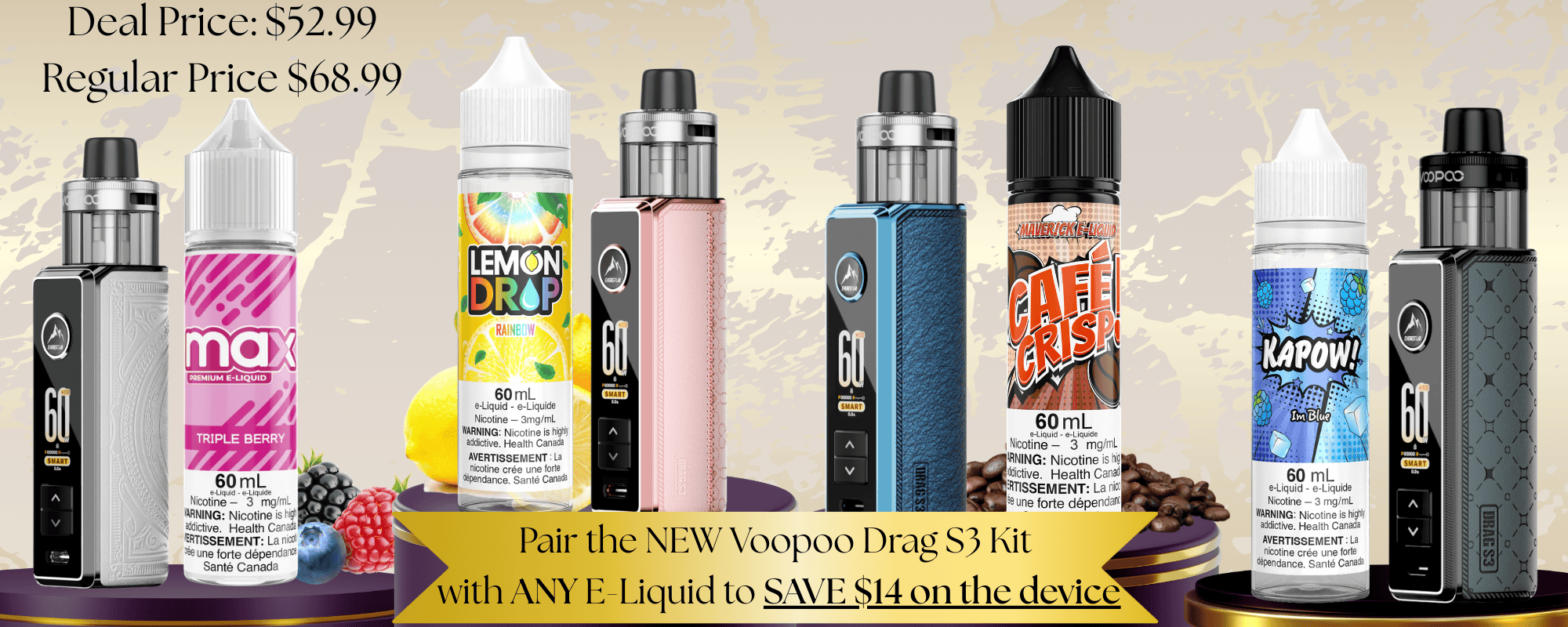 Pair the VooPoo Drag S3 with ANY E-Liquid and Save $14 on the Device