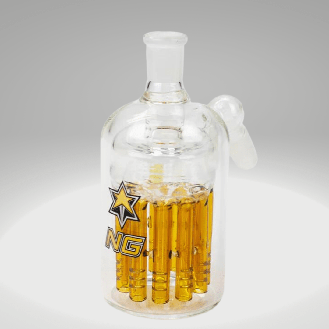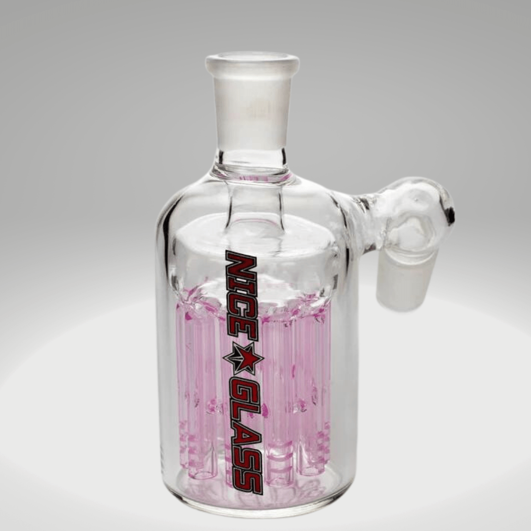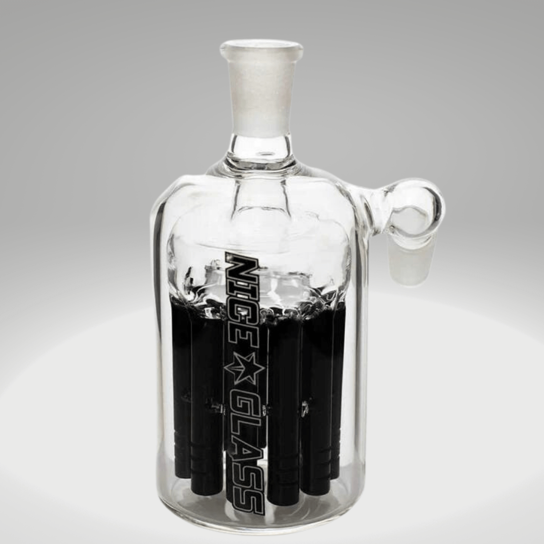 Nice Glass 11-Arm Ash Catcher has a 18mm female joint and is packed with diffusion featuring its 11-arm percolator in a round top chamber. The added cooling and filtering with provide a smoother and cooler smoke experience. This ash catcher from Nice Glass significantly increases the comfort level of a smoke, and makes sure that you get the best smoking experience possible. It also looks really, really cool. We love the barebones aesthetic this thing has going on.