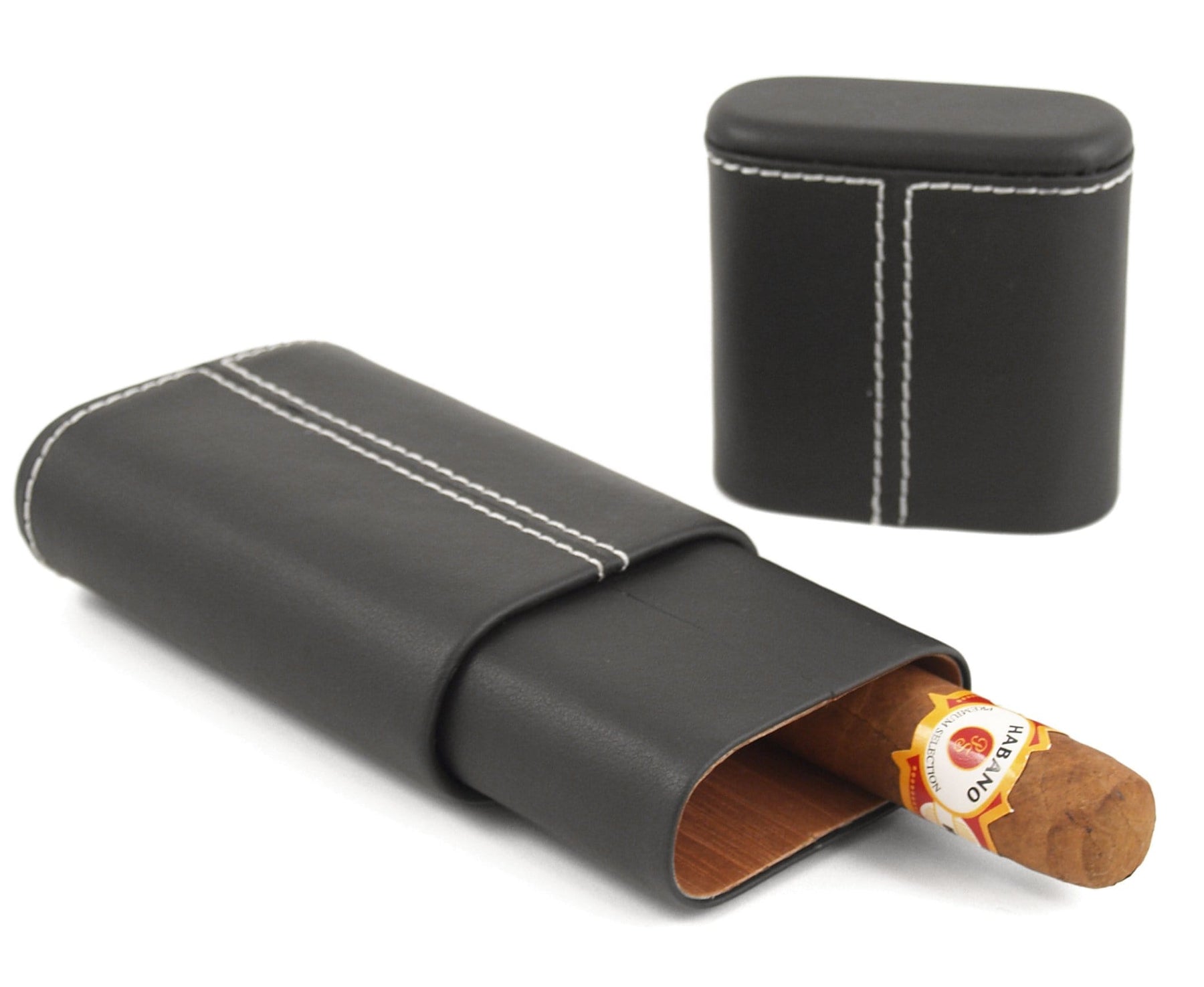 Cigar Case Cedar Lined for 3 Robusto cigars to fit comfortably. This beautiful 3-finger cedar lined case in black leather with black stitching and cedar lined is the perfect gift for yourself.
