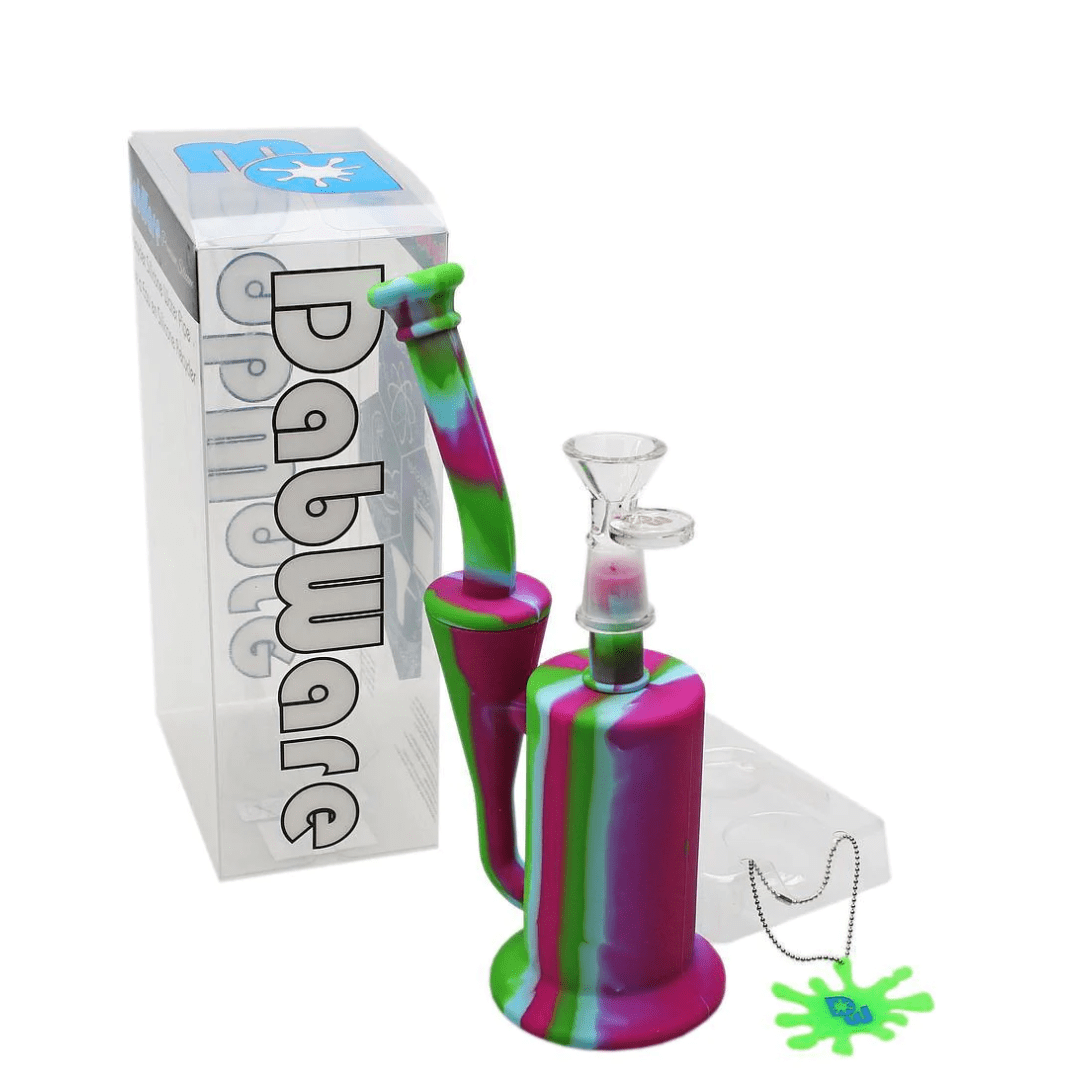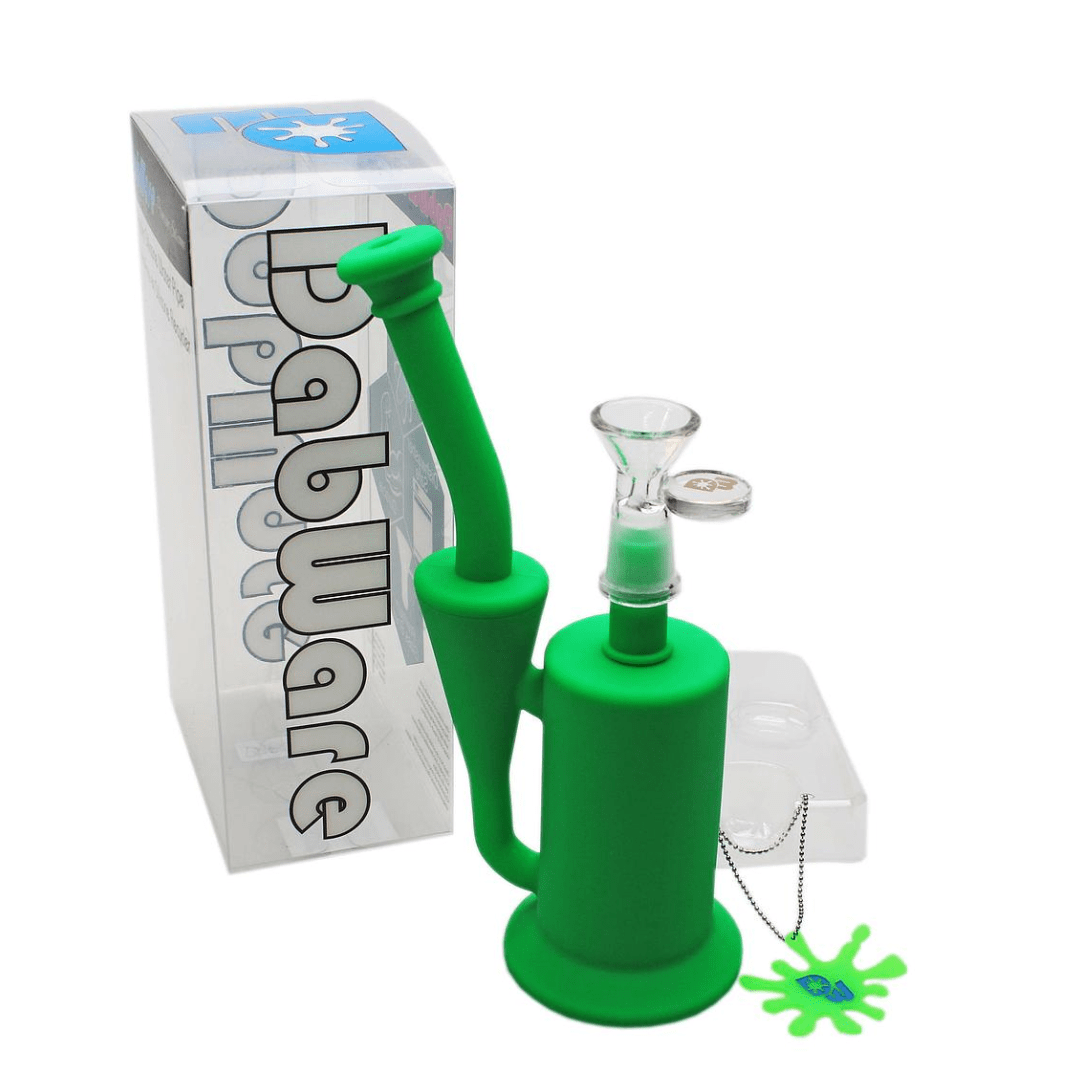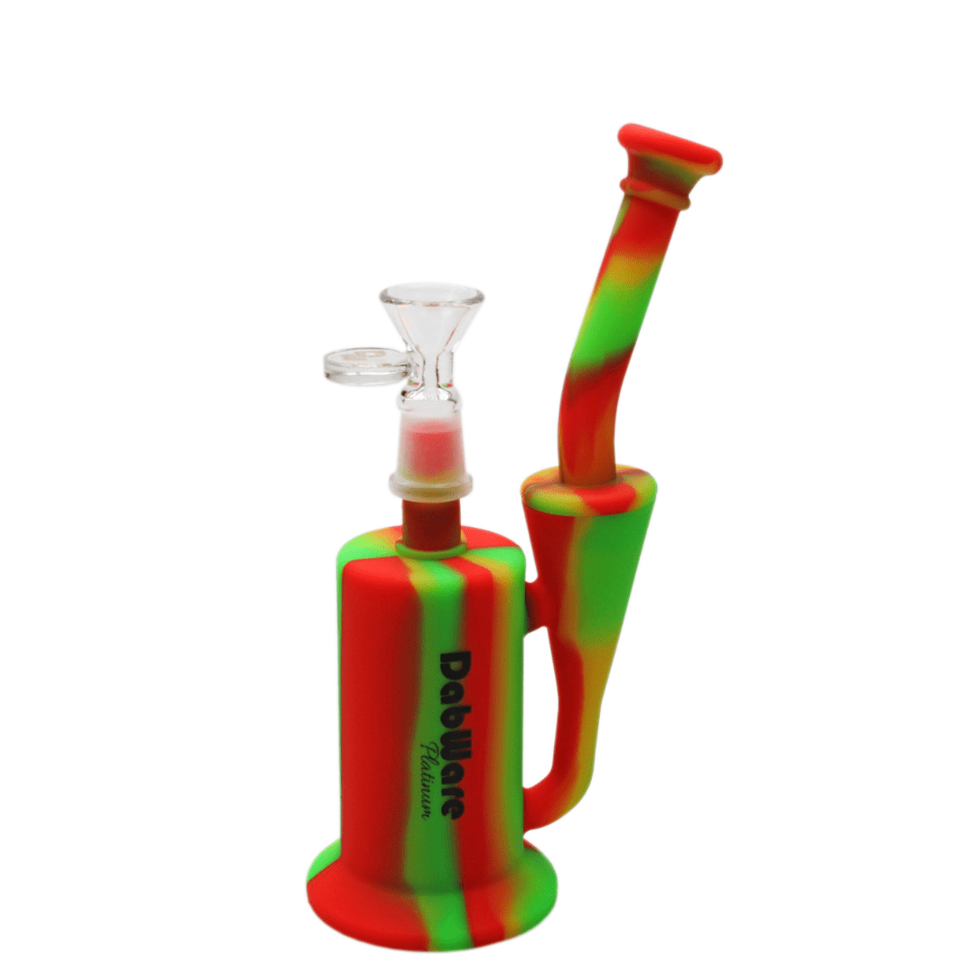 Dabware Platinum Silicone Recycler Bong 8" is made of the highest food grade silicone that is machine wash friendly, although hot water and soap is all you need to clean this bad boy! The Dabware Platinum Silicone Recycler stands at 8" in height which is perfect to fit into any one the go bag for those who love to adventure in the summer months. This silicone recycler includes a 14mm female Dabware glass bowl and a wide base that suctions itself to flat surfaces to prevent being knocked over. If you're prone to breaking things, this bong is the one for you!.