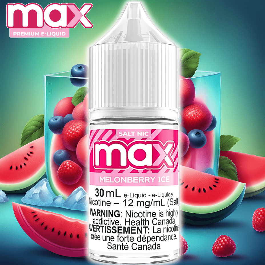 Vape to the MAX with Max E-Liquid Melonberry Ice Salt. Without a doubt, Max E-Liquid Salts gives a Melonberry Ice Salt SUPER FLAVOUR vape juice. Prepare to have your tastebuds for the Savage Strawberry Watermelon combination with a refreshing icy exhale.