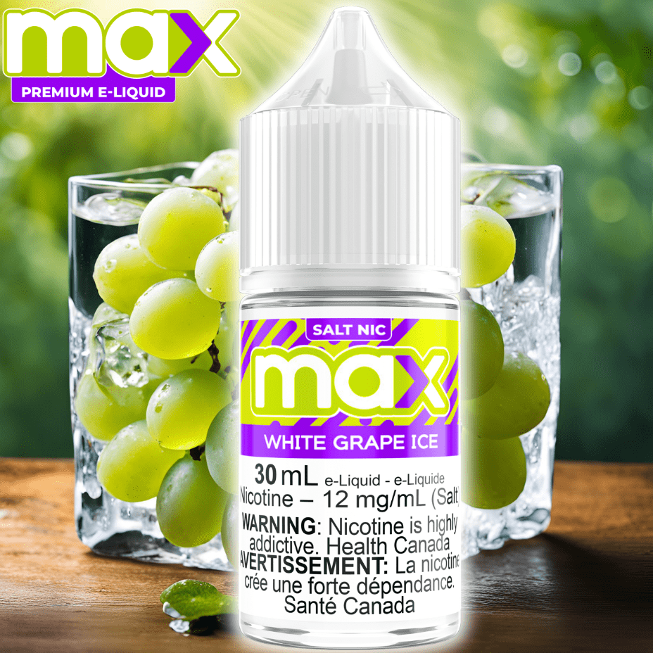 Vape to the MAX with Super Flavours by Max E-Liquid White Grape Ice Salt. Firstly, Puff and be wowed as your mouth fills with the taste of crisp sweet, yet tart white grapes. Then, a revitalizing kiss of ice on the exhale leaves you wanting more. Undeniably, this SUPER FLAVOUR salt nicotine produces the same sweet and satisfying flavours found in disposable vapes, in a convenient 30ml bottle!