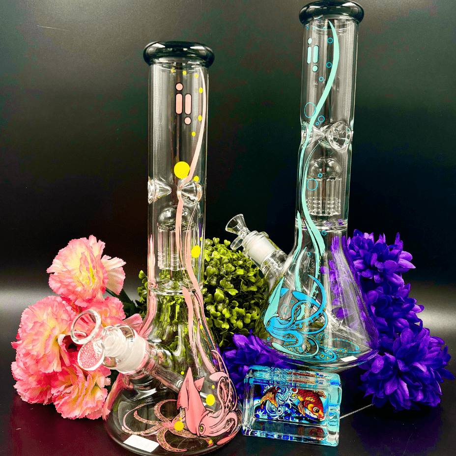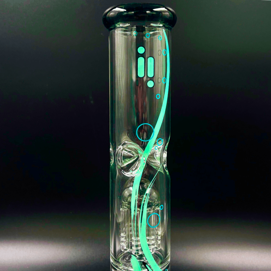 To begin, Infyniti doesn't sacrifice aesthetics for function. The beaker style base allows you to have maximum water allowance in your piece. In other words, this gives your smoke more surface area to break though and creates bubbles to filter impurities. Then, as the smoke travels through the second chamber it is filtered again through the tree percolator and a bit more water. Therefore, you can expect nothing but smooth smoke!